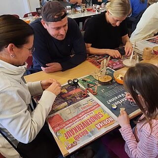 "Basteln, rascheln, stricken, hämmern ..." heißt es in einem Weihnachtslied. Etwas Schönes gestalten gehört zu Weihnachten einfach dazu, und gemeinsam macht das noch mehr Freude. Deshalb luden wir am Nachmittag des 24. November 2024 wieder zum Basteln ein. Die Ideen, die wir vorbereitet hatten, fanden viel Anklang. Für Kuchen und Kaffee zur Stärkung zwischendurch war natürlich ebenfalls gesorgt.