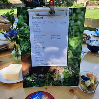 Nach der Vorführung standen - natürlich - Gaffee un Guchen bereit und gab es Gelegenheit zum Austausch über das, was in den Sketchen aufs Korn genommen wurde, über bislang unbekannte sächsische Fachbegriffe oder auch neue Pläne. Das war ein gelungener und anregender Nachmittag.