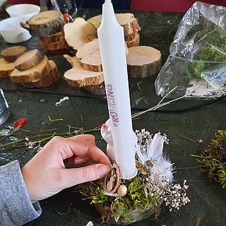 Konzentriertes Arbeiten, Gedankenaustausch bei der Suche nach einer schönen Gestaltung, Hilfe wenn etwas nicht klappt - so ging es zu in unserer gemeinsamen Bastelrunde am 25. November 2023. Circa 40 große und kleine Bastelfreunde kreierten wunderschöne Kränze, Figuren und Kerzenhalter. Manche nahmen ihr Werk gegen einen kleinen Material-Obolus mit nach Hause, manche spendeten es dem Förderverein, der es am 3. Dezember 2023 auf dem Mölbiser Adventsmarkt oder am 9. Dezember 2023 auf dem Röthaer Weihnachtsmarkt für seinen guten Zweck verkauft.