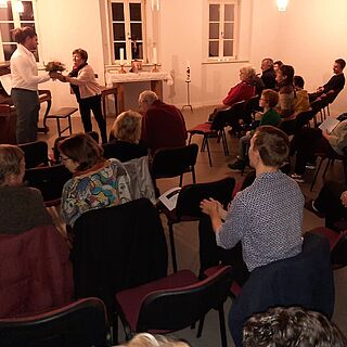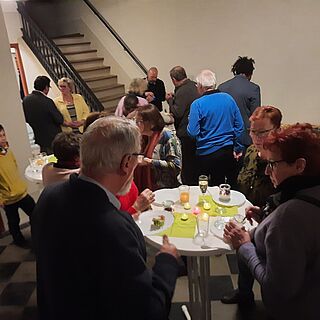 Nach dem Konzert luden wir zu Häppchen und Sekt ein, und der Abend klang mit vielen angeregten Gesprächen in guter Stimmung aus.