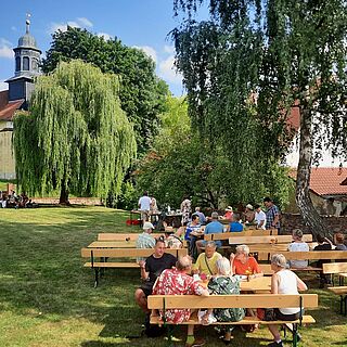 Am Samstag, dem 23. Juli 2022, führte ein Fahrrad-Wandelkonzert von Trages über Mölbis nach Oelzschau. Zwischendurch gab es in Mölbis Kaffee und leckeren selbstgebackenen Kuchen zur Stärkung. Die Teilnehmer und Gäste genossen die Athmosphäre im Pfarrgarten. Wir hoffen, das findet in dieser oder einer ähnlichen Form im nächsten Jahr wieder statt!