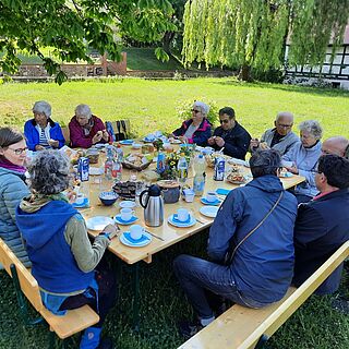 Unsere Veranstaltungsreihe für das Jahr 2022 eröffneten wir mit Geselligkeit und Zeit zum Gespräch: Am Ostersonntag (17. April 2022) trafen wir uns zu Tagesbeginn an der Feuerschale im Pfarrgarten, frühstückten gemeinsam und liefen dann den Weg nach, den die Umweltschützer in Mölbis vor der Wende auf den "Wallfahrten" gegangen sind. Heute ist es natürlich ungefährlich und sehr schön, auf die Hochhalde Trages zu spazieren und den Ausblick zu genießen. Von einem Zeitzeugen erfuhren wir aus erster Hand sehr viel über die Umstände und Hintergründe damals. Es war äußerst interessant, so viele Details zu erfahren. Unser Verein möchte nun versuchen, solche persönlichen Erfahrungen in geeigneter Form festzuhalten und interessierten Menschen zugänglich zu machen.