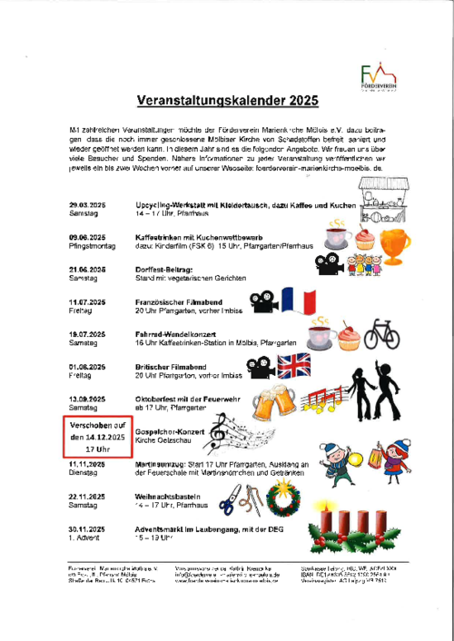Nähere Informationen zu den einzelnen Veranstaltungen erhalten Sie jeweils ein bis zwei Wochen vorher auf unserer Startseite unter "Aktuelles" oder Sie klicken hier.